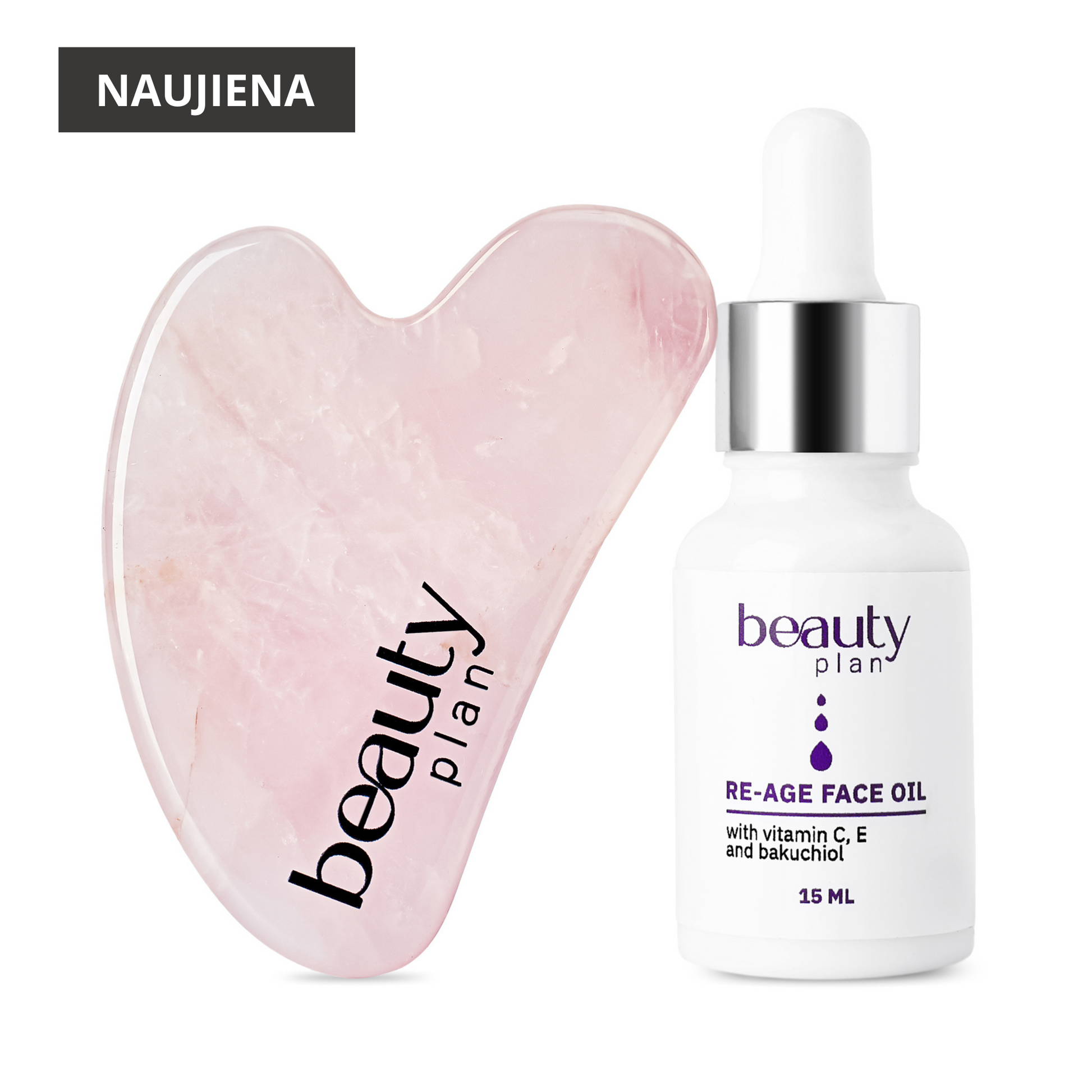 Rinkinys sukurtas moteriai, kuri ieško ne greito rezultato, o gilaus ryšio su savimi. Gua sha rožinio kvarco akmuo kartu su Beauty Plan Re-age veido aliejumi tampa ne tik grožio priemone, bet ir raminančiu kasdieniu ritualu, kuris veikia tiek odą, tiek emocinę savijautą.